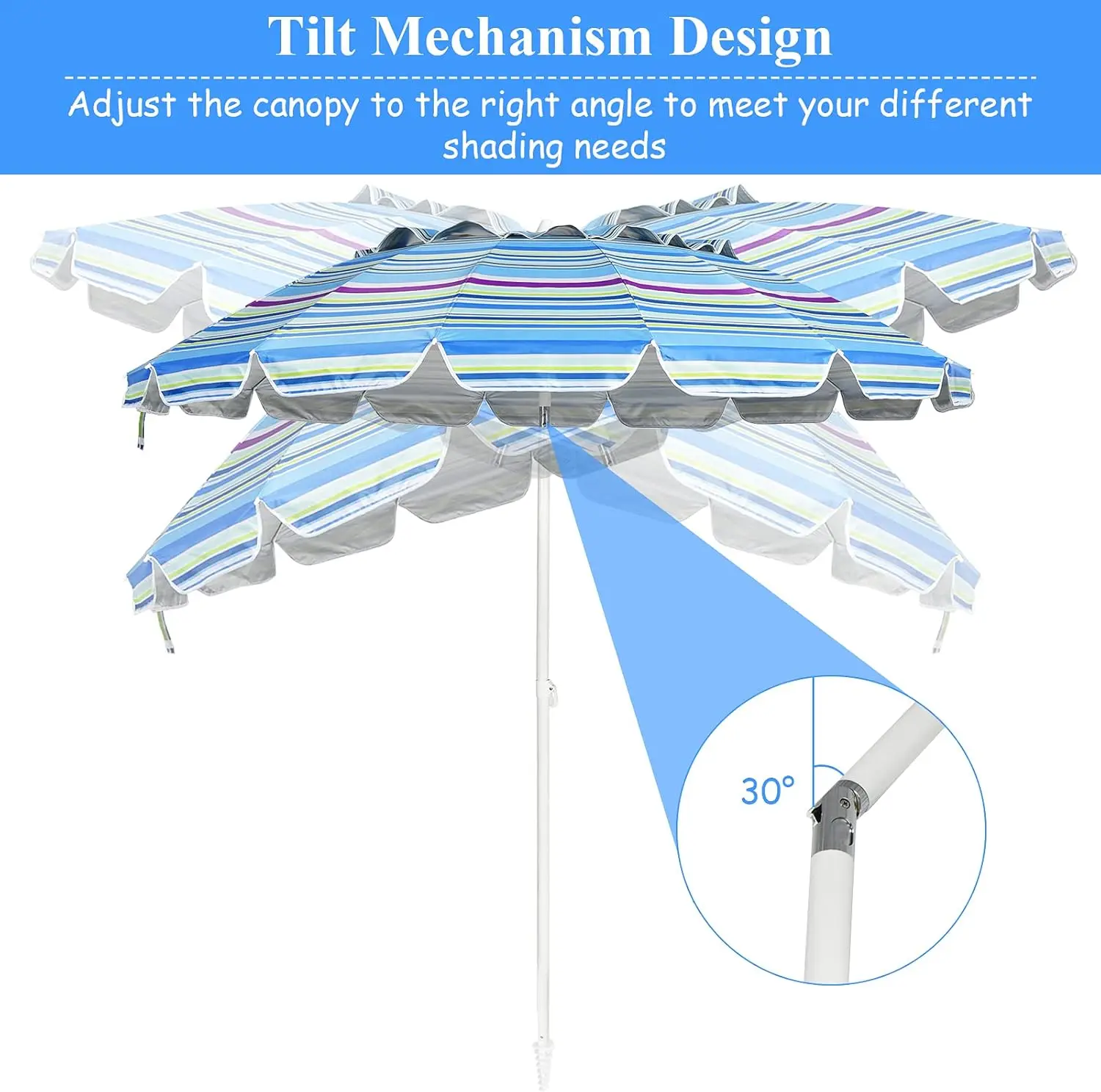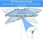 - Tilted Device Design: The beach umbrella with tilting mechanism is specially designed to block the sun. You can easily and quickly adjust the angle of the canopy without moving the umbrella to achieve maximum shadow from sunrise to sunset.