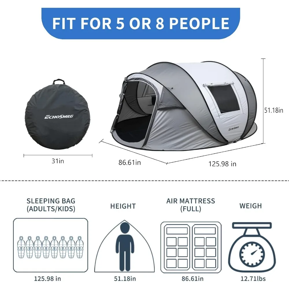 Camping Instant Pop Up Tent, 2/4/6/8/10 Person, Water Resistant for Camping Hiking and Outdoor