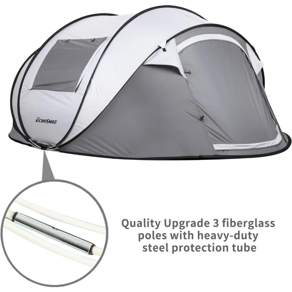• 【QUALITY UPGRADE】We have improved our tent to achieve higher quality. The main improvement is of fiberglass tent pole. We cover junction of tent pole with heavy-duty steel protection tube, which adds more weight capacity to and prevents accidental breaking of tent pole to a large extent.