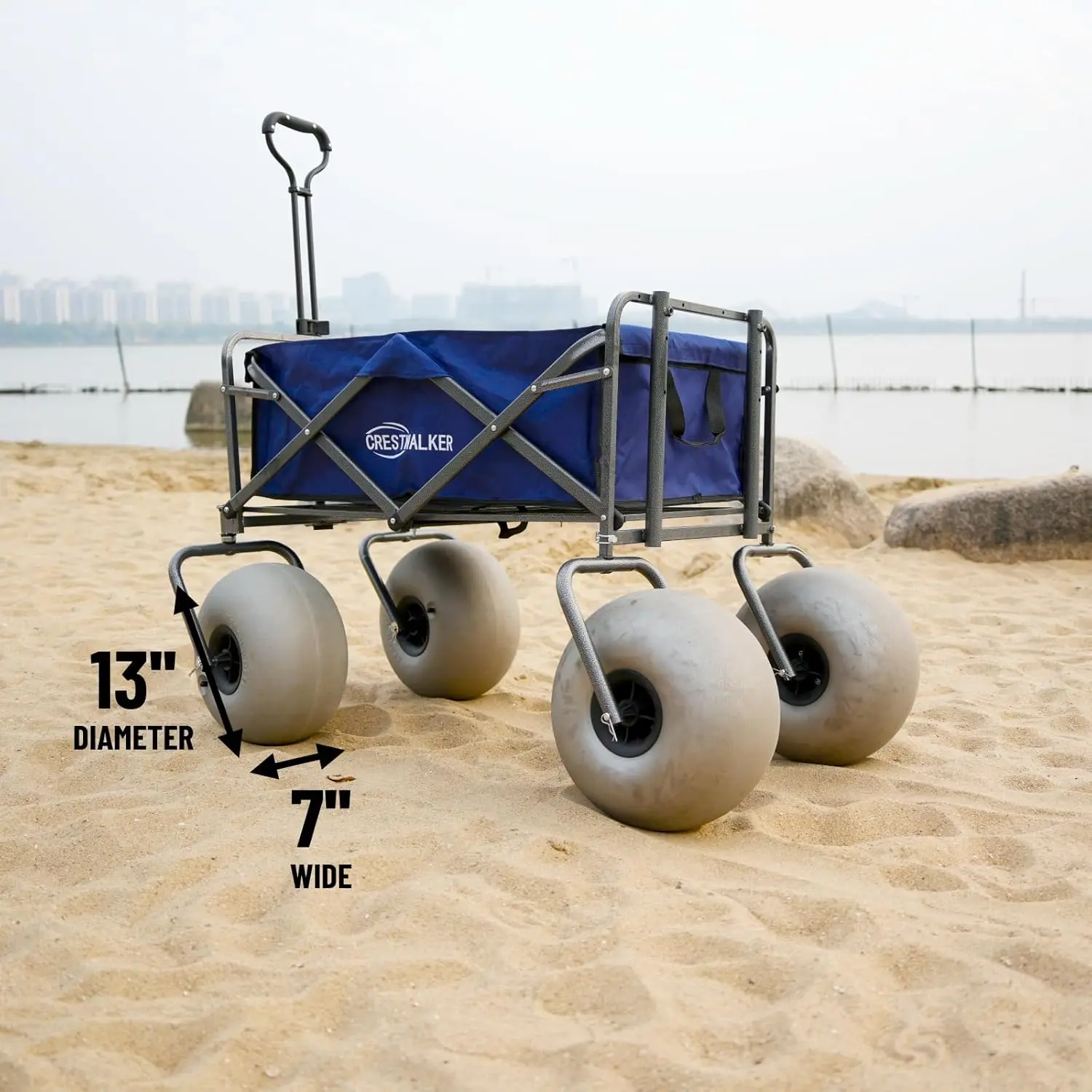Beach Cart with 13″ Balloon Wheels, Collapsible Beach Wagon with Big Wheels for Sand, Pump Included (Beach Wagon)