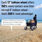 - 🏖️BUILT FOR BEACH🏖️ With its big balloon wheels (13” diameter, 7” wide) the wagon rolls across the soft sand more smoothly